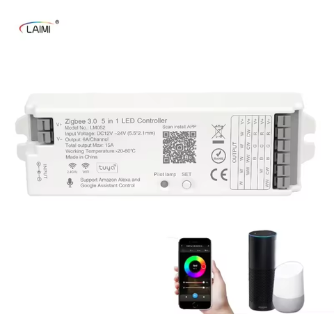 LM052 5-in-1 Tuya App Zigbee 3.0 RF Funk LED-Controller Zigbee-Dimmer für RGB-, RGBW-, CCT-, RGBW-, CW-, WW-LED-Streifen